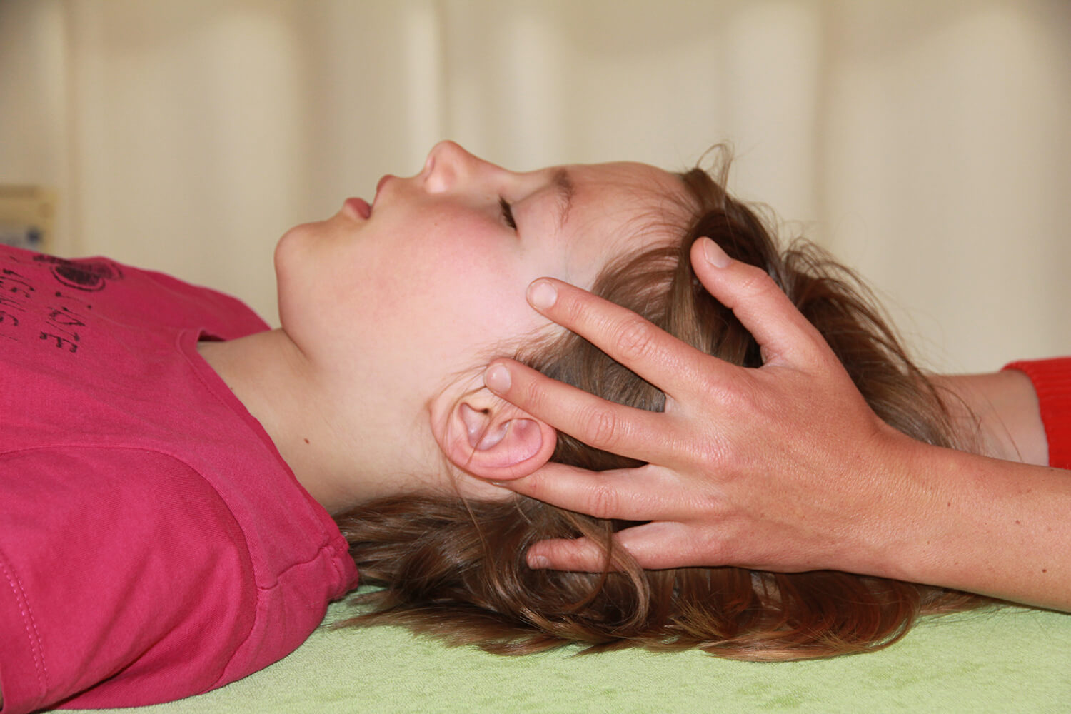 Die Behandlung kann auf dem Schoß einer vertrauten Bezugsperson stattfinden, beim Spielen, Vorlesen, Stillen oder auch im Schlaf. Mit sehr sanften, dem wachsenden Organismus angepassten Techniken spüre ich Spannungen, Blockaden oder Bewegungseinschränkungen auf und begleite diese zurück in ein physiologisches Gleichgewicht – immer im Tempo Ihres Kindes.